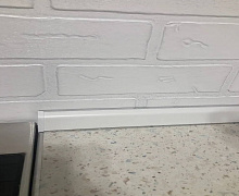 Способ монтажа: плинтус для столешницы из вспененного ПВХ состоит из двух частей - основания и декоративной части. Основание крепится к поверхности на жидкие гвозди или саморезы к стене или столешнице. Далее сверху надевается декоративная часть. Торцы оформляются при помощи специальной фурнитуры, подходящей под цвет плинтуса.