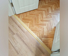 Так же вам подойдет T-образный порожек для незаметного перехода двух одноуровневых напольных покрытий. Т-образного порог является самым плоским, с надежной системой крепления (без торчащих дюбелей) и защитит ваши носки от дырок. Гармония и стиль в одном пороге!
